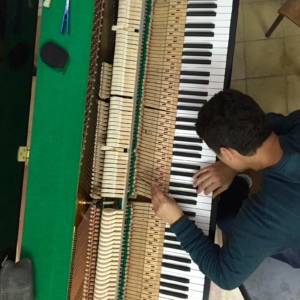 Hamza Boutaghrassa, 30 years old, comes from a modest family in Tetouan. He is an inveterate lover of Chopin and a passionate pianist. As soon as he can, he goes to the conservatory to rehearse his scales. In 2011, he is noticed for his excellent hearing by a French tuner from ITEMM (Institut technologique européen des métiers de la musique, in Le Mans) who is on a mission for Music Fund. Hamza then attends seven local training courses (70 days) and spends more than four months in Belgium between 2014 and 2018, notably at the Hanlet workshops in Brussels. In the Tetouan region, he is the only one person who can tune pianos. Since 2018, he has been giving piano lessons in Chefchaouen, while continuing his work as a tuner-repairer in the Conservatories managed by the Moroccan Ministry of Culture. He also works as a freelancer for private individuals.